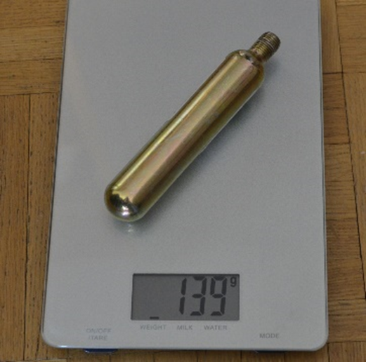 - Punnitse patruuna kirje- tai keittiövaa’alla. Paino saa olla enintään yhden gramman vähemmän kuin patruunaan merkitty paino.